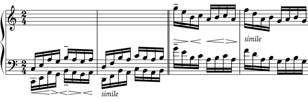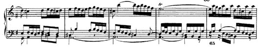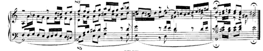 Further, Bach's keyboard(s) is an entirely different instrument from the piano of Hanon's time, and his music isn't always idiomatic of the instrument. Bach often seems to have had little concern about the playability of many of his works because the musical thinking is often in the context of other instrumental genres; for example, choral, chamber, and organ music. As a result, the mechanical demands of Bach's works frequently involve finger gymnastics more than anything else. For example: